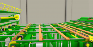 Sawmill Simulation describes one part of a sawmill line simulated with physics simulation. Physics simulation illustrates the behaviour of the boards on the sawmill line very realisticly.